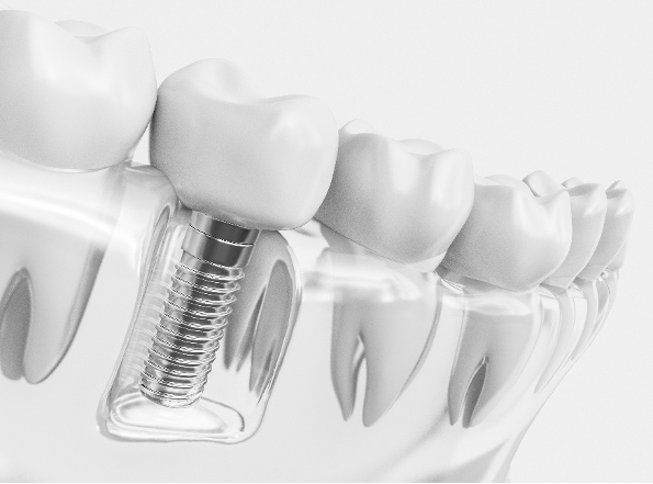 A dental implant is a small titanium post that is placed into the jawbone to replace the root of a missing tooth. Once healed, it acts as a stable foundation for a crown, bridge, or denture.